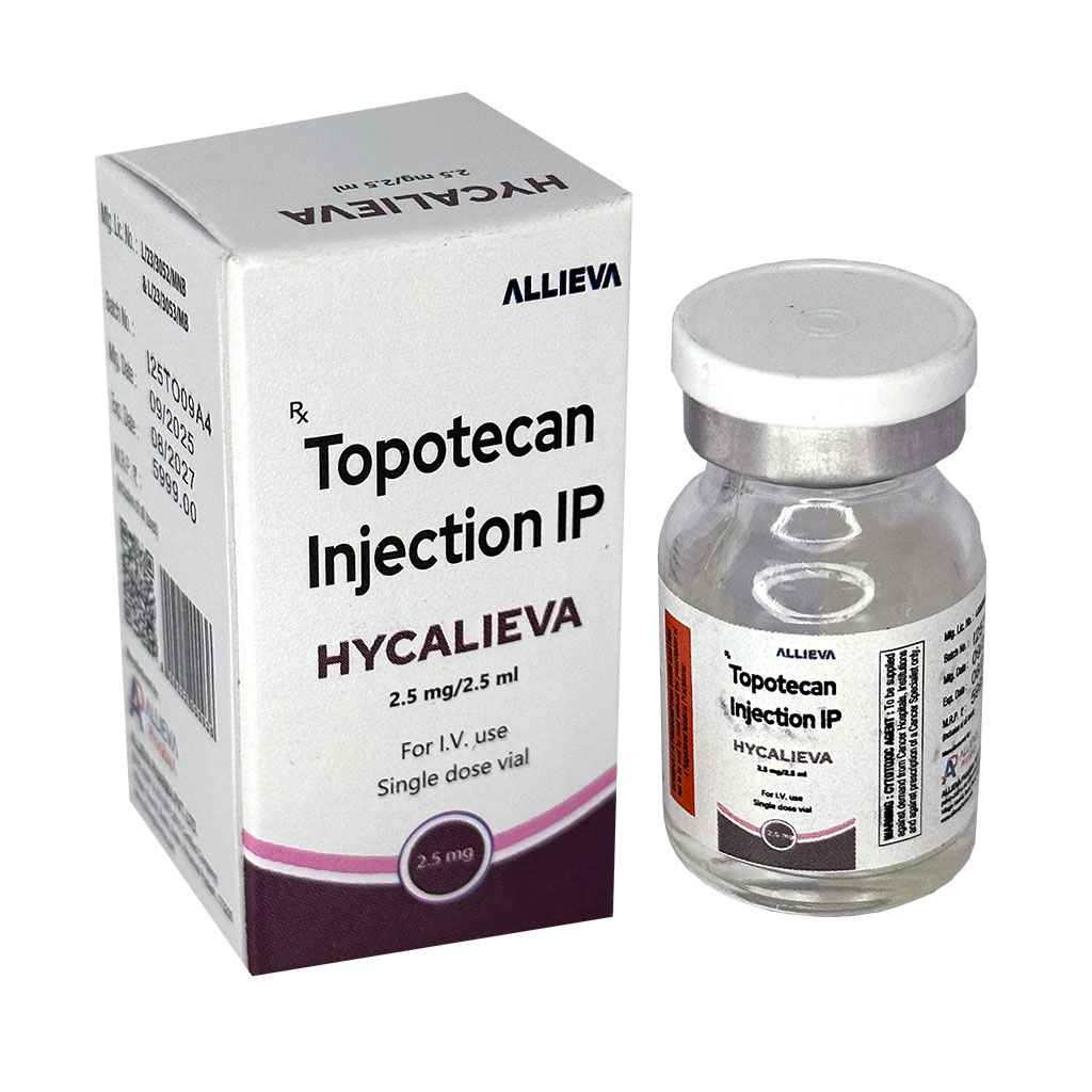| Description | HYCALIEVA 2.5 mg contains Topotecan, a topoisomerase-I inhibitor belonging to the camptothecin class. It works by stabilizing the topoisomerase-I–DNA complex, causing DNA strand breaks and preventing DNA replication, leading to cancer cell death. |