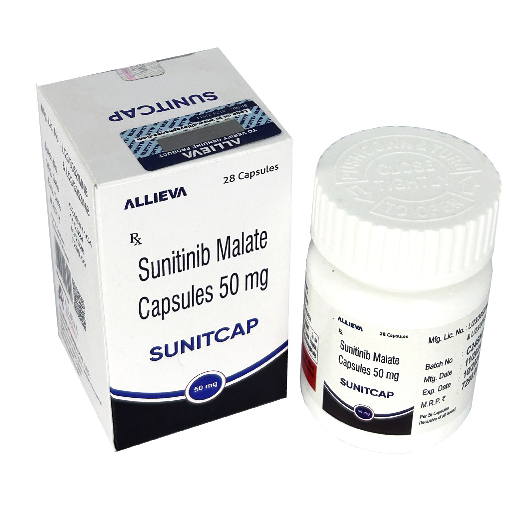 | Description | SUNITCAP 50 mg contains Sunitinib malate, an oral targeted anticancer medicine. It is a multi-targeted tyrosine kinase inhibitor (TKI) that blocks receptors involved in tumor growth, angiogenesis (blood vessel formation), and cancer cell survival, thereby slowing cancer progression. |