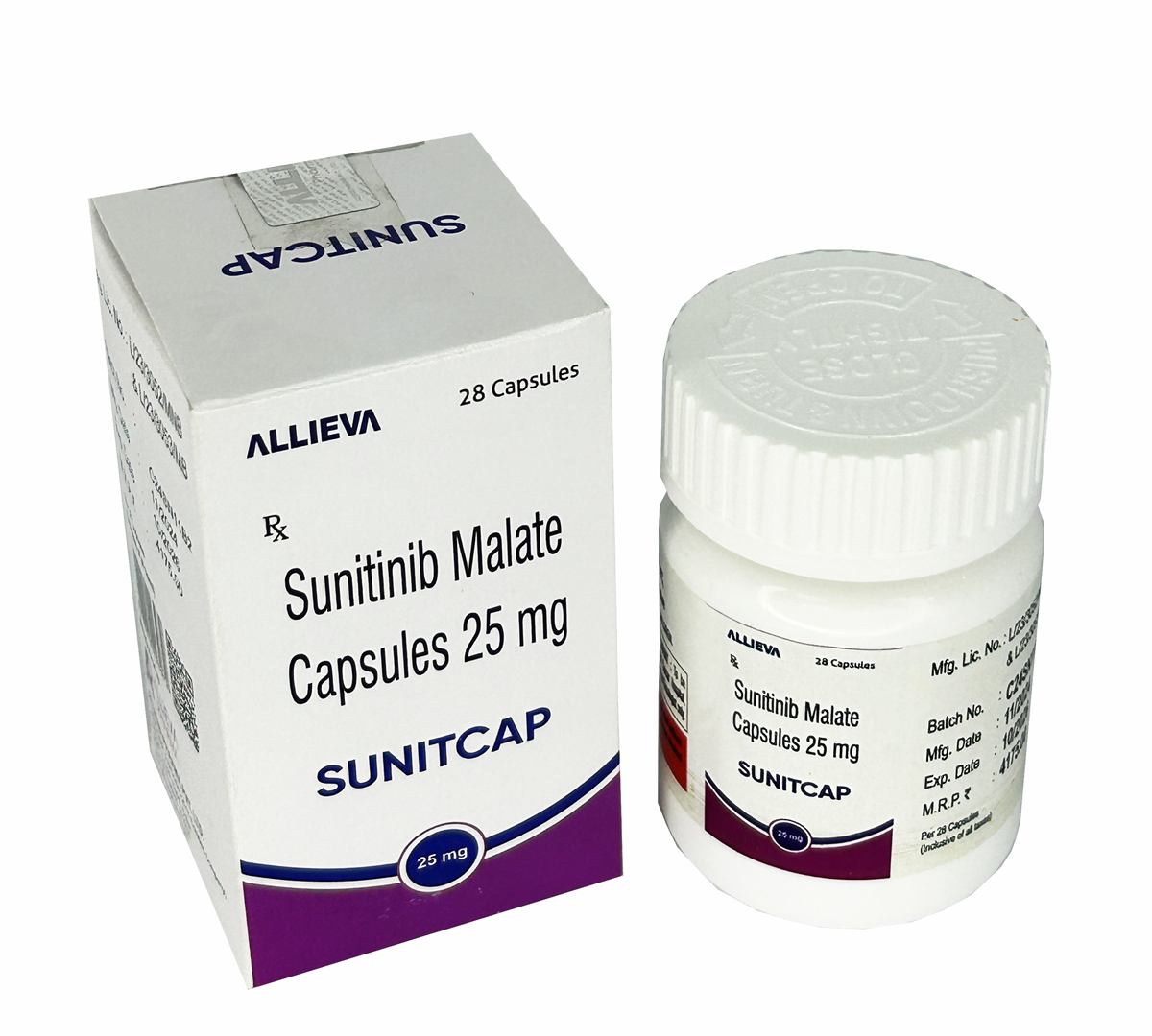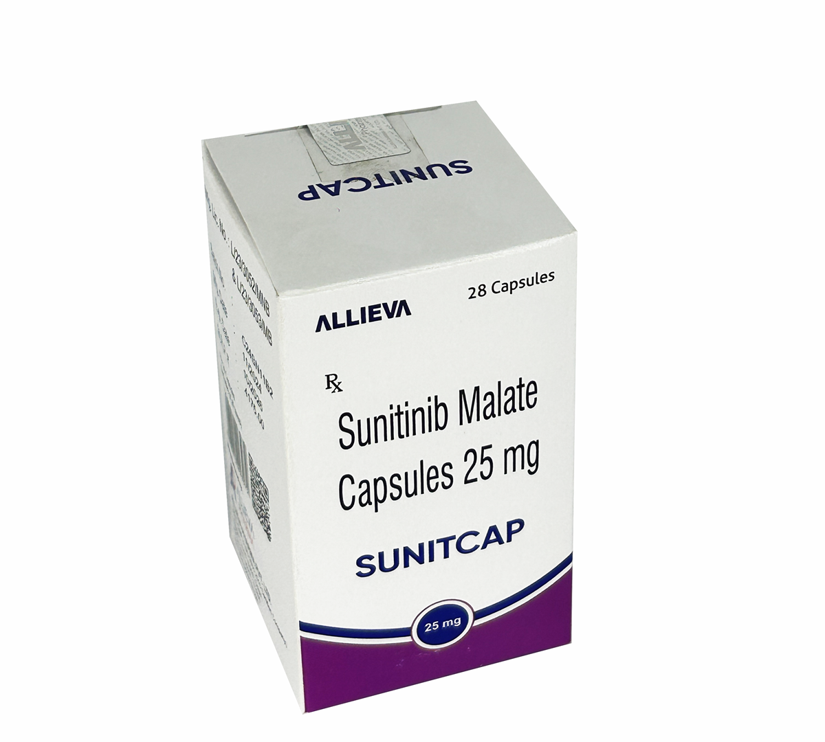 Sunitcap 25mg Capsule is used in the treatment of kidney cancer, pancreatic cancer and gastrointestinal stromal tumour.